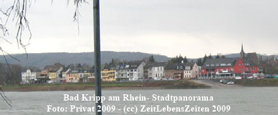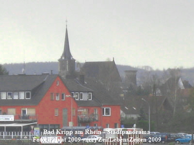 Vom rechtsrheinischen Linz aus hat man einen sehr guten Blick auf das linksrheinische Bad Kripp, das man nicht (z.B. aufgrund sehr schlichter Karten) mit dem dahinter liegenden Sinzig verwechseln darf. Paul Thomas malte es im Jahr 1912 oder 1913. Da das Gemälde von Paul Thomas nicht datiert oder gar mit einer Ortsangabe versehen war, konnte erst durch einen Abgleich verschiedener Rheinlandschaften mit dem Bild Klarheit bringen, dass es sich bei dem Gemälde von 1912 um Bad Kripp in der Nähe von Sinzig handelt. Der Vergleich mit den (bei regnerischem Wetter) im Jahr 2009 entstandenen Aufnahmen zeigt, dass das Panorama weitgehend erhalten geblieben ist, auch wenn der Turm direkt neben der Kirche nicht mehr die Form des Jahres 1912 hat. Aber Fähranleger und Häuserzeilen zeigen doch, wie bewusst hier offenbar Stadtplanung betrieben wurde.