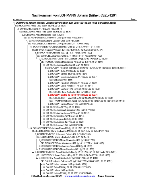 Zum besseren Verständnis der Strukturen sei dem weiteren Text zu den Lohmann-Kindern und Nachkommen eine Grafik vorangestellt, die zugleich auch sehr schnell die Zusammenhänge zu den Familien Scharpenberg und Familie Heilenbeck deutlich macht:Am Ende der Seite befindet sich eine Listendarstellung der Nachkommen Lohmann.